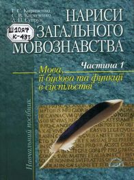Кириченко Г. С. та ін. Нариси загального мовознавства : навч. посіб. У 2-х ч. Ч. 1. Мова, її будова та функції в суспільстві / Григорій Кириченко, Світлана Кириченко, Алла Супрун. – Київ : Ін Юре, 2008. – 163 с.