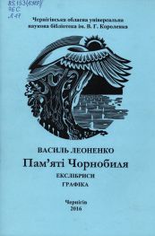 Леоненко В. Ф. Пам'яті Чорнобиля: екслібриси, графіка [Ізоматеріал] / Василь Леоненко ; [авт. вступ. ст., уклад. Л. В. Феофілова] ; Черніг. обл. універс. наук. б-ка ім. В. Г. Короленка. – Вид. 2-ге, допов. – Чернігів : [б. в.], 2016. – 52 с. : іл.