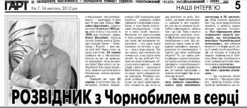 Яновський О. Розвідник з Чорнобилем в серці / Олег Яновський // Гарт. – 2012. – 16 лют. (№ 7) . – С. 5.