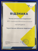 За значний внесок у розвиток бібліотечної справи Чернігівщини