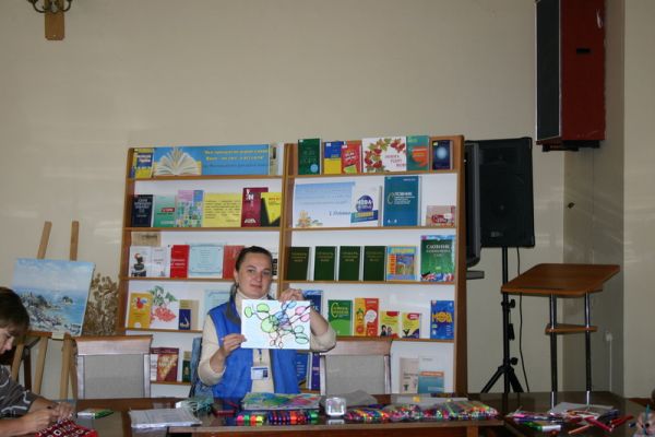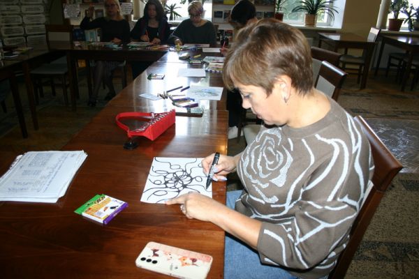 Спочатку бібліотекарки темним кольором окреслювали контури основних сфер свого життя. Далі наповнювали ці сфери яскравими барвами, використовуючи кольорові олівці та фломастери. Обов'язковим елементом було знаходження та згладжування всіх кутів, завдяки чому малюнок набував плавних і заокруглених ліній. У кожної з нас вийшла своя неповторна та яскрава нейрографіка. Після обміну враженнями психологиня запропонувала повторити такі арт-заняття через певний час.