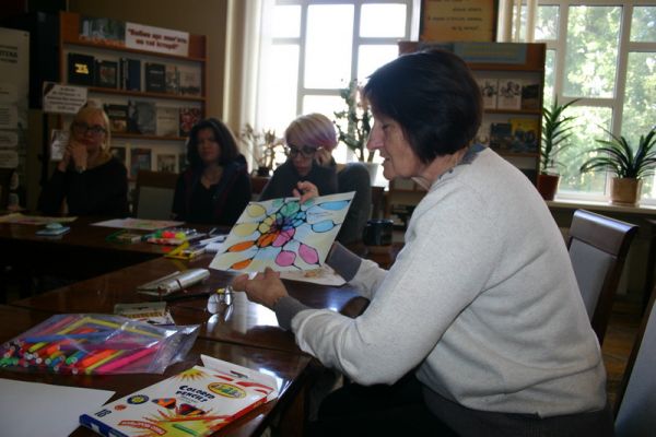 Пані Галина, використавши метафоричні картки, допомогла присутнім налаштуватися на роботу. Учасниці створювали неповторні малюнки, відштовхуючись від власних почуттів та життєвого досвіду.
