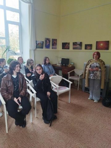 Завідувачка відділу документів з економічних, технічних, природничих та сільськогосподарських наук Наталя Карбовська провела для гостей тематичну годину "Зустріч з бібліотекою".