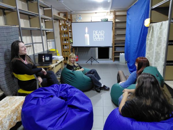 Наприкінці вересня на дев'яту зустріч (так, ми ще й досі їх рахуємо) в Чернігівській ОУНБ імені Софії та Олександра Русових зібралися учасниці кіноклубу "Лампа" на перегляд та обговорення чергового кіношедевру. А причиною "зажурених дощів" прямісінько у Мистецькій вітальні стала драма "Спілка мертвих поетів" (1989 р., режисер – Пітер Вір, сценарист – Том Шульман).