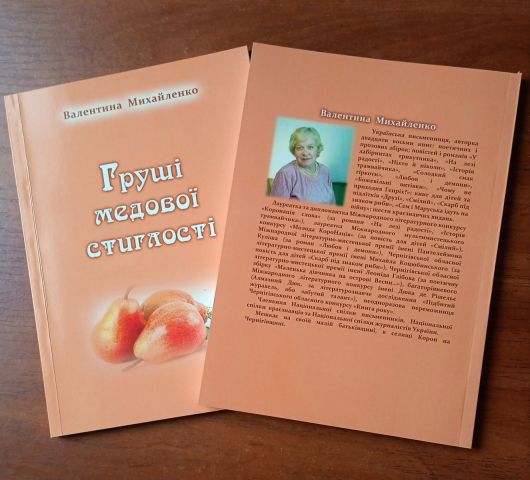 Щоб написати відгук про книгу, її треба спочатку прочитати. Чи бодай погортати. Особливо якщо вона вабить до себе якоюсь дивовижною енергетикою. Отже, маємо щастя тримати в руках нову тендітну збірочку творів нашої землячки з Коропа Валентини Михайленко зі смачною запашною назвою "Груші медової стиглості". Загалом пані Валентина подарувала Чернігівській ОУНБ імені Софії та Олександра Русових шість примірників цього медово-грушевого дива, за що ми щиро дякуємо!