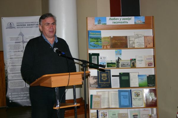 З появою унікального видання про старовинне містечко Любеч на Дніпрі, сучасне селище з непересічною та непростою історією та відомих мешканців, археологічні старожитності, його сьогодення та майбутнє привітав усіх присутніх директор Чернігівської обласної універсальної наукової бібліотеки імені Софії та Олександра Русових Юрій Соболь.
