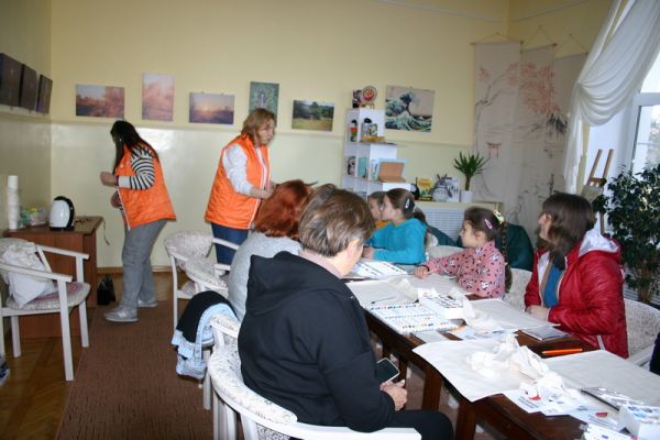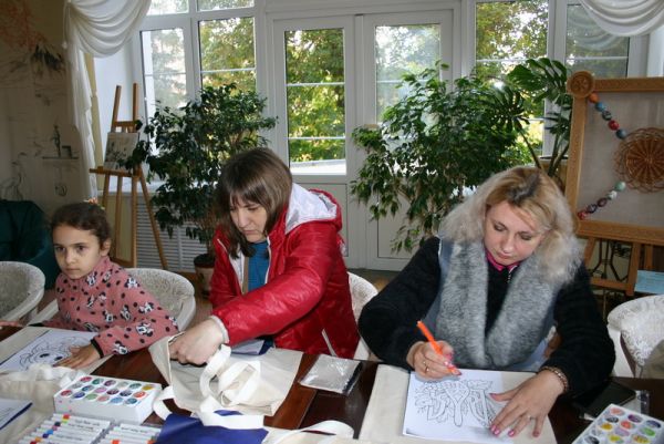 Атмосфера на заході панувала дуже тепла і творча, адже метою заняття було зробити подарунки з любов'ю: від дітей – батькам та від батьків – дітям. Усі працювали напрочуд натхненно, завзято розмальовуючи шопери й косметички акриловими фарбами та фломастерами, а кольорова гама залежала від внутрішнього світу особистості.