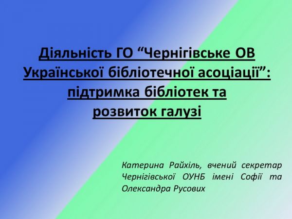ГО "Чернігівське обласне відділення Української бібліотечної асоціації" та КЗ "Чернігівська обласна універсальна наукова бібліотека імені Софії та Олександра Русових".
