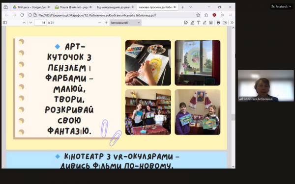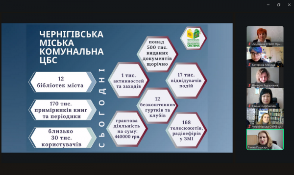 30 жовтня бібліотекарі Чернігівщини презентували кращі практики своєї роботи на онлайновому марафоні інноваційного досвіду публічних бібліотек, організованого