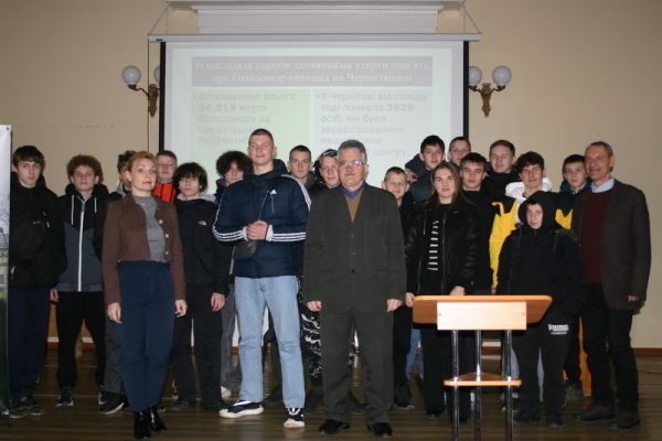 Запрошені на захід здобувачі освіти Чернігівського професійного будівельного ліцею, викладачі ліцею та відвідувачі бібліотеки уважно, із зацікавленістю прослухали лекцію. Ведуча Татаренкова Юлія представила до уваги присутніх книжкову виставку "Голодомор – сторінки із минулого життя", де зібрані книги, збірки наукових статей, матеріали наукових конференцій, спогади свідків тих трагічних подій в історії радянської України. Наприкінці заходу відбулася спільна фотосесія всіх присутніх.