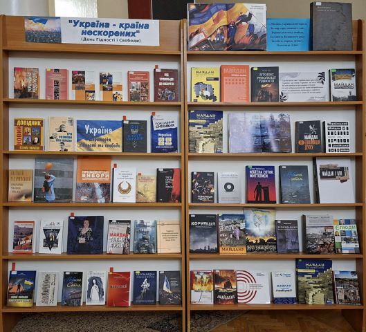 З метою збереження та донесення інформації про утвердження ідеалів свободи й демократії, вшанування патріотизму та мужності громадян, які восени 2004-го та у листопаді 2013 – лютому 2014 років стали на захист демократичних цінностей, прав та свобод людини, національних інтересів і європейського вибору, працівниці відділу документів із гуманітарних наук Чернігівської ОУНБ імені Софії та Олександра Русових підготували книжкову виставку-панораму "Україна – країна нескорених", яка знайомить з хронологією та історичними фактами доленосних подій в Україні початку ХХІ століття.