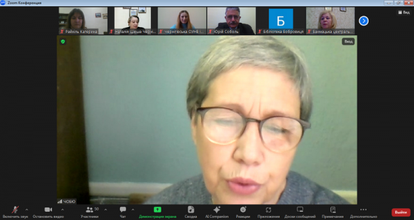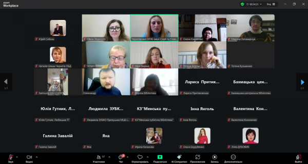 26 листопада на платформі ZOOM відбулася щорічна обласна школа керівника "Бібліотека і громада: формат успішної взаємодії", організована на виконання плану роботи Департаменту культури і туризму, національностей та релігій Чернігівської ОДА та Чернігівської обласної універсальної наукової бібліотеки імені Софії та Олександра Русових. До професійної зустрічі долучилися 55 директорів публічних бібліотек та спеціалістів відділів культури. Модерувала захід завідувачка науково-методичного відділу Ольга Шурубенко.