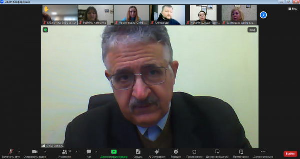 Директор Чернігівської ОУНБ імені Софії та Олександра Русових Юрій Соболь, в.о. директора обласної бібліотеки для дітей Тамара Клюй та в.о. директора обласної бібліотеки для юнацтва Марина Книр говорили про досягнення, виклики та перспективи бібліотек області в умовах війни, участь у різноманітних обласних та всеукраїнських конкурсах тощо.