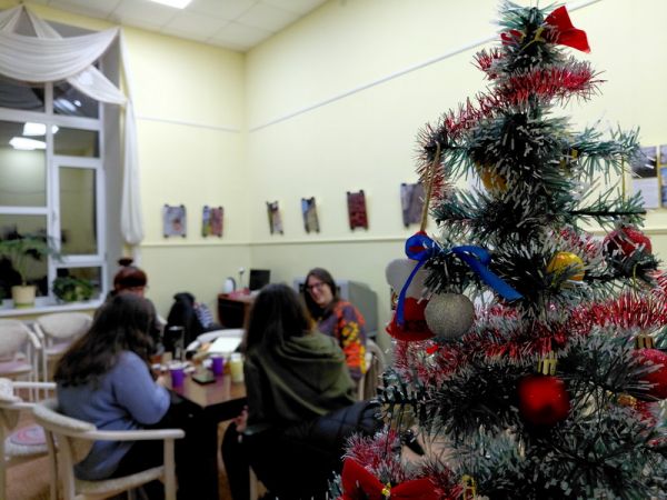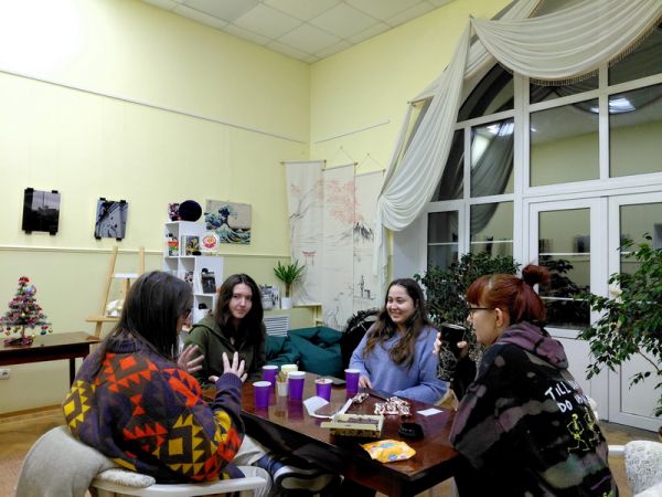 Обговорення учасниці кіноклубу провели у затишній атмосфері з горнятками запашного фруктового чаю, додаючи крихту святкового світла, тепла та спокою в буремне сьогодення.