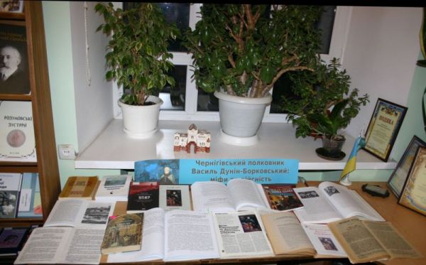 Ознайомитися з подробицями життя Василя Дуніна-Борковського, легендами, версіями, припущеннями щодо виникнення чуток можна у відділі краєзнавства Чернігівської обласної універсальної наукової бібліотеки імені Софії та Олександра Русових, де відкрилася книжково-ілюстративна виставка "Чернігівський полковник Василь Дунін-Борковський: міфи та дійсність".