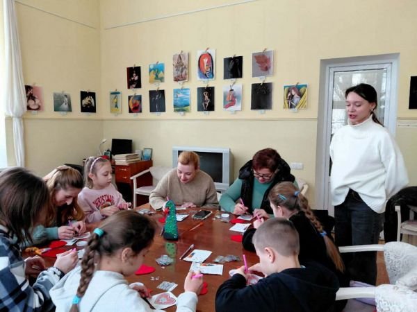 Мами з дітками зібралися у Мистецькій вітальні. Організаторкою та ідейною натхненницею дозвілля від БФ "Голоси дітей" була Анастасія Копитько, яка допомагала і пояснювала всі нюанси роботи, створювала святковий настрій та атмосферу для дорослих і малечі. Усім були надані необхідні матеріали та інструменти для виготовлення новорічних прикрас на ялинку, кожен міг обрати дизайн для своєї прикраси.