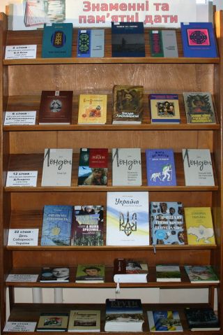 На книжковій виставці "Знаменні та пам'ятні дати" представлені документи, присвячені окремим ювілейним датам, подіям, пам'ятним дням, які відзначаються у січні в Україні й за кордоном. Усі ці книжки можна взяти у відділі абонемента Чернігівської ОУНБ імені Софії та Олександра Русових.