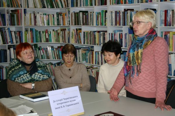 З книжково-ілюстративними виставками "Дослідниця Чернігово-Сіверщини із Запоріжжя: пам'яті Світлани Іваницької" та "До історії Чернігівського історичного музею імені Василя Тарновського" присутніх ознайомила модераторка заходу – завідувачка відділу краєзнавства бібліотеки Ірина Каганова.