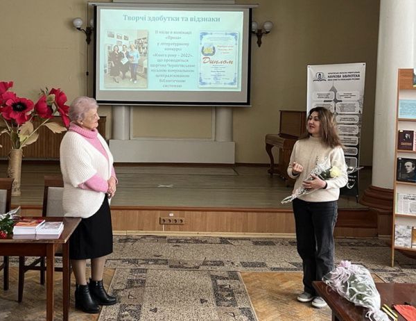Від імені адміністрації авторку привітала вчений секретар Чернігівської ОУНБ імені Софії та Олександра Русових Катерина Райхіль. Вона наголосила на тому, що пані Надія – наша колежанка, яка нині працює у філії "Медична бібліотека", а до цього майже два десятиліття очолювала її. Також Катерина Миколаївна підкреслила великий життєвий і професійний досвід авторки та побажала їй нових творчих успіхів і натхнення.