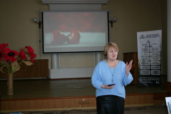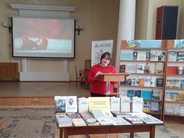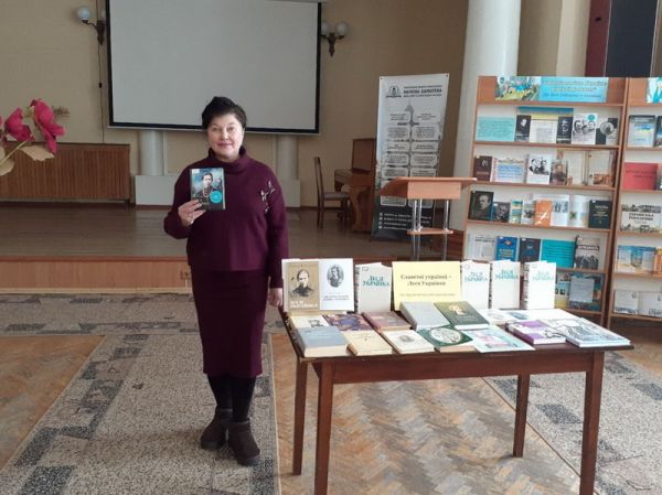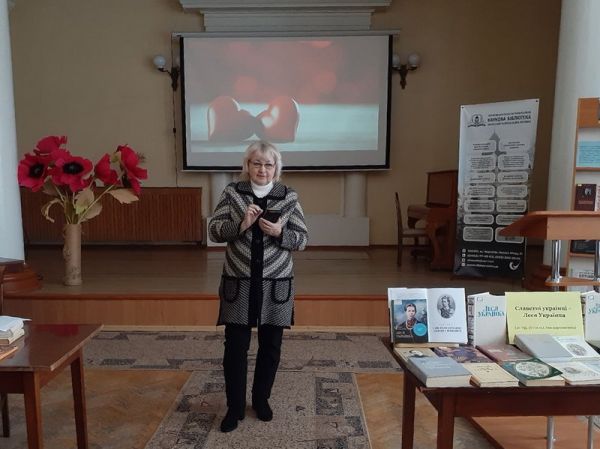 Наприкінці заходу провідна бібліотекарка відділу документів із гуманітарних наук Валентина Куценко презентувала книжкову виставку-персоналію "Великі українці – Леся Українка" до 155-річчя від дня народження відомої української поетки, письменниці, перекладачки та провела бібліографічний огляд літератури. А ще – зачитала напам'ять вірші "Не жаль мені, що я тебе кохаю", "Гетьте, думи, ви хмари осінні", "Доля", "Стояла я і слухала весну".