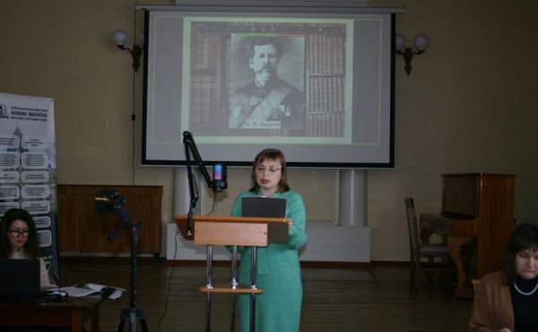Завідувачка відділу зберігання бібліотечних фондів Чернігівської ОУНБ імені Софії та Олександра Русових Лариса Притиковська виступила з доповіддю про творчу спадщину подружжя Русових, яка зберігається у фондах бібліотеки та є важливим джерелом для сучасних наукових досліджень і культурної пам’яті регіону.
