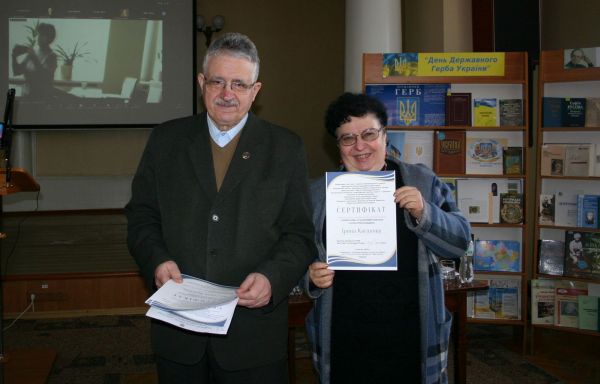 Голова ГО "Центр гармонійного розвитку людини "Перлина", Валентина Антипець вразила присутніх своїми мудрими роздумами про національне виховання дітей. Принагідно пані Валентина представила виплекані нею книжки – "Казки від діда Івана" та буквар "Наша хата", в якому втілила свій підхід до навчання грамоти. Примірник "Казок від діда Івана" було подаровано нашій бібліотеці. Щиро радіємо і щиро дякуємо!