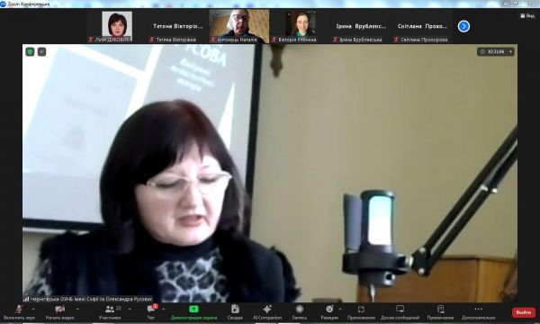 До обговорення долучилася директорка Ріпкинського ліцею імені Софії Русової, голова ГО "Асоціація освітян імені Софії Русової" Наталія Корж. Вона виступила з доповіддю "Значення педагогічної спадщини Софії Русової в умовах сучасних викликів".