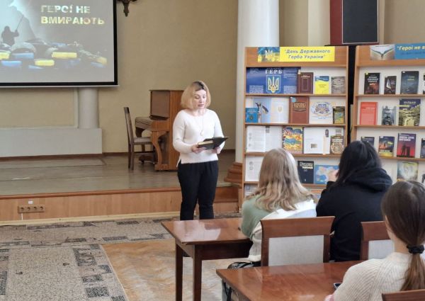 22 лютого у великому читальному залі Чернігівської обласної універсальної наукової бібліотеки імені Софії та Олександра Русових відбулася година пам'яті "Такі Герої не вмирають" для здобувачів вищої освіти першого та другого курсу Пенітенціарної академії України, які завітали на захід разом з педагогом – старшим інспектором відділу культурно-виховної та психологічної роботи Аллою Чебоненко.
