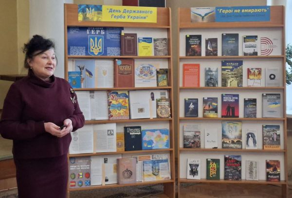 Також Юлія Олександрівна провела бібліографічний огляд літератури, представленої на книжковій виставці "Такі Герої не вмирають", продемонструвала історичні книги, хроніки подій на Майдані Незалежності, документальні свідчення, спогади учасників Революції гідності та їхніх родичів, збірки поетичних творів і прози.