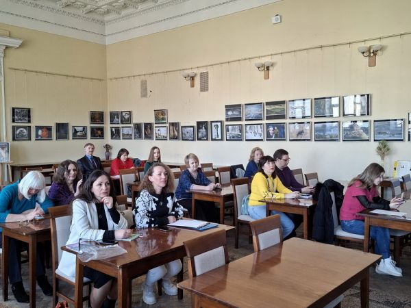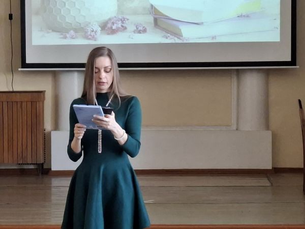 В. о. завідувачки відділу документів із гуманітарних наук Інна Янголь представила до уваги слухачів віночок сонетів "Із миттєвостей перших почуттів" Олександри Атрощенко. Також Інна Миколаївна запросила творчих особистостей до участі у щорічному обласному поетичному фестивалі "Дотиком душі" і нагадала про необхідність зареєструватися протягом квітня – початку травня.