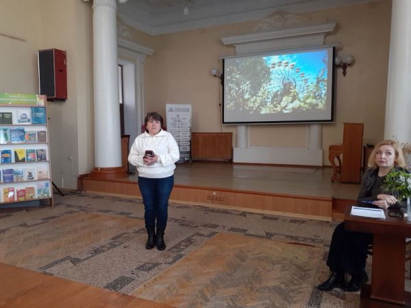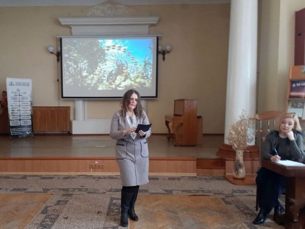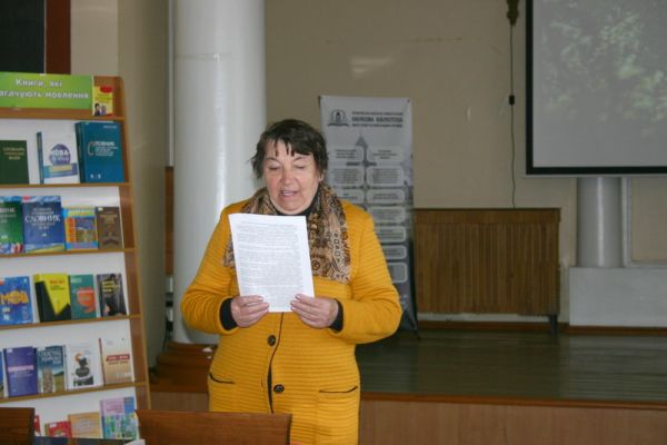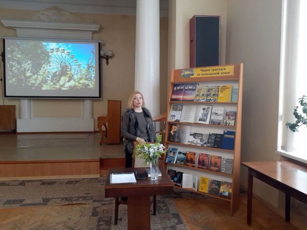 Ведуча заходу – бібліотекарка відділу документів із гуманітарних наук Юлія Татаренкова – зробила екскурс у минуле, нагадавши присутнім про день Чорнобильської трагедії, а також назвала імена багатьох українських авторів, які зверталися у своїй творчості до цієї теми. Це, зокрема, Ліна Костенко, Іван Драч, Борис Олійник та інші відомі постаті.