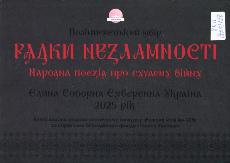 Рядки незламності. Народна поезія про сучасну війну : полімистецький твір / [С. Лазо, І. Павлюк, П. Білоус ; упоряд. Д. Бура]. – Київ : Друкарський двір Олега Федорова, 2025. – 215 с. : кольор. іл., фот. кольор.