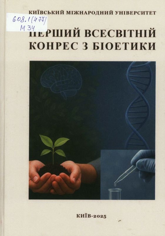 Матеріали I Всесвітнього конгресу з біоетики, 30 вересня 2025 року : [ст. і тези доп. подані мовою оригіналу] / НАН України, Нац. акад. мед. наук України, Київ. міжнар. ун-т, ДУ "Ін-т медицини ім. Ю. І. Кундієва НАМН України" [та ін.] ; [редкол.: С. М. Мартиненко та ін.]. – Київ : КиМУ, 2025. – 203 с. : іл. – Текст укр., англ. – Бібліогр. в кінці ст.