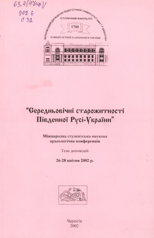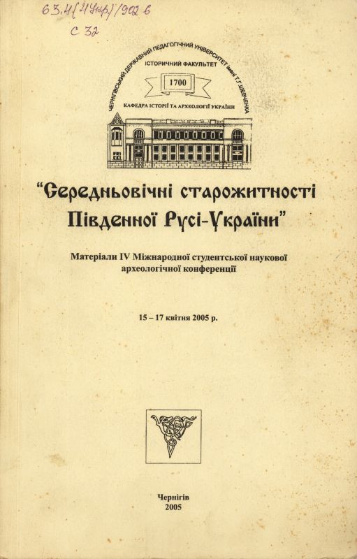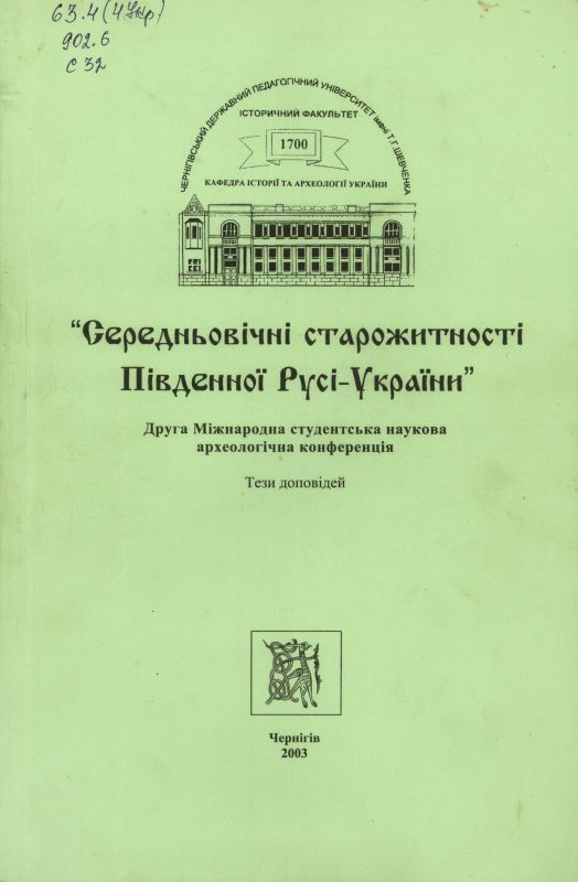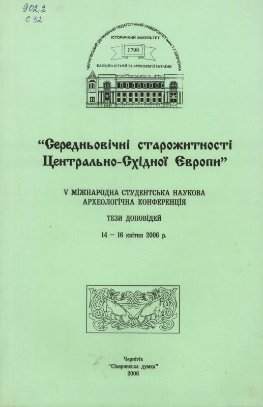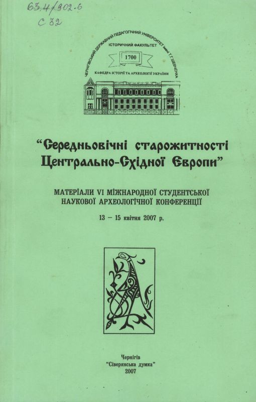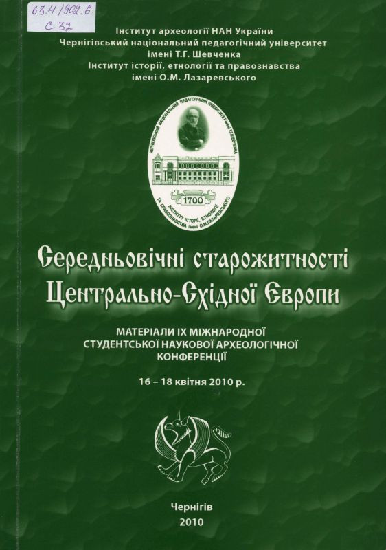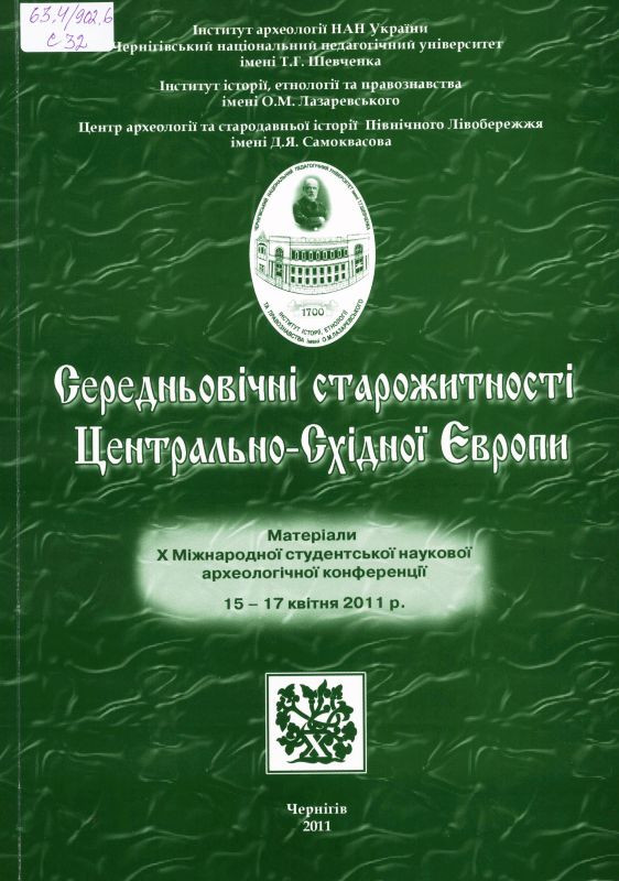 Середньовічні старожитності Центрально-Східної Європи : матеріали ХІ Міжнар. студ. наук. археол. конф. (Чернігів, 20–22 квіт. 2012 р.) / Ін-т археології АН України, Черніг. нац. пед. ун-т ім. Т. Г. Шевченка, Ін-т історії, етнології та правознав. ім. О. М. Лазаревського, Центр археол. та стародав. історії Північ. Лівобережжя ім. Д. Я. Самоквасова ; [редкол.: В. О. Дятлов та ін.]. – Чернігів : Чернігівський національний педагогічний університет імені Т. Г. Шевченка, 2012. – 219 с. : табл., мапи, іл. – Бібліогр. в кінці ст.